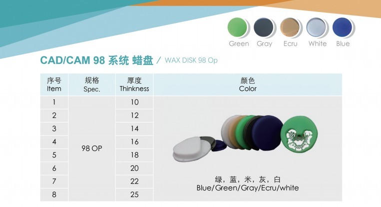 Blok lilin kompatibel dengan laboratorium gigi untuk membuat semua cetakan pria jaringan oral. Khusus untuk sistem CAD/CAM gigi lilin, mahkota gigi cetakan lilin dan jembatan